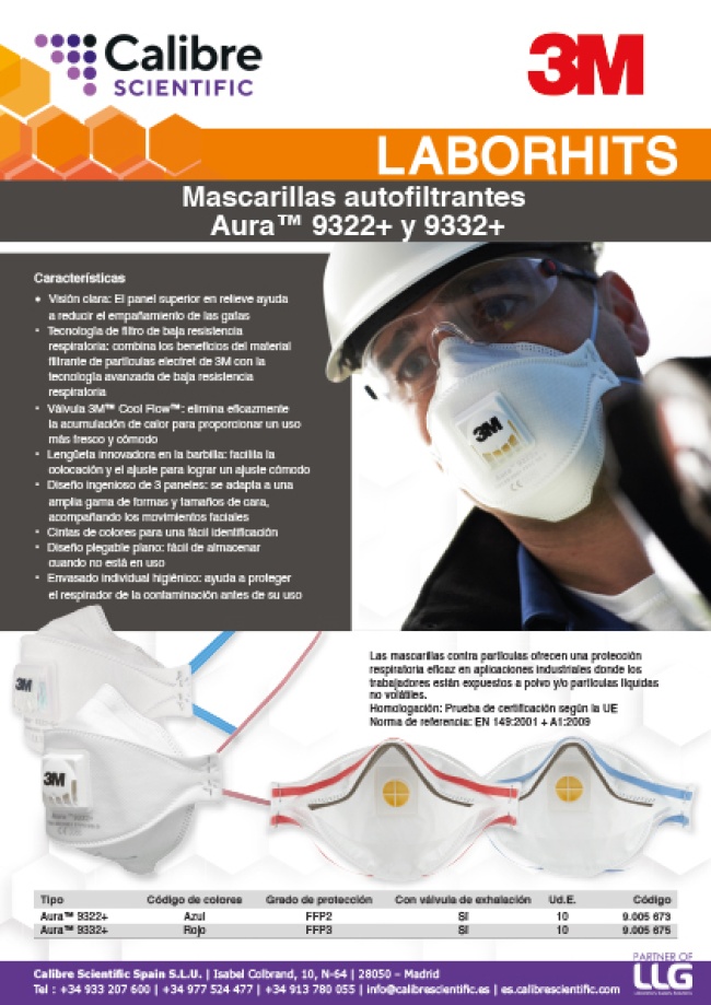 Mascarillas autofiltrantes Aura™ 9322+ y 9332+ · 3M